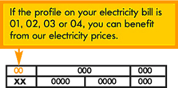 Electricity - your premises must have an electricity meter with a profile 01, 02, 03 or 04. The profile class of your electricity meter is included in the Supply Number on your current electricity bill, as indicated in the diagram below.